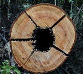 panopuun eli mushc'kih:n. Tätä tukinpätkää on höylännyt vuosiensaatossa sadat ellei sadattuhannet miehet. Tukin pökkiminen